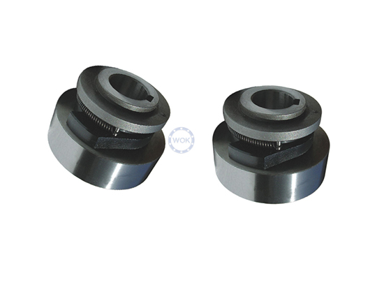 GCS系列為滾柱式帶撥爪的超越離合器,其內(nèi)部采用滑動軸承。主要工作原理是主動側帶動從動側(如安裝圖所示)一起旋轉。在工作時需要內(nèi)環(huán)停止時,可由撥爪機構控制。當擋塊擋住撥爪時,從動側立刻停止,而主動側則繼續(xù)運轉。